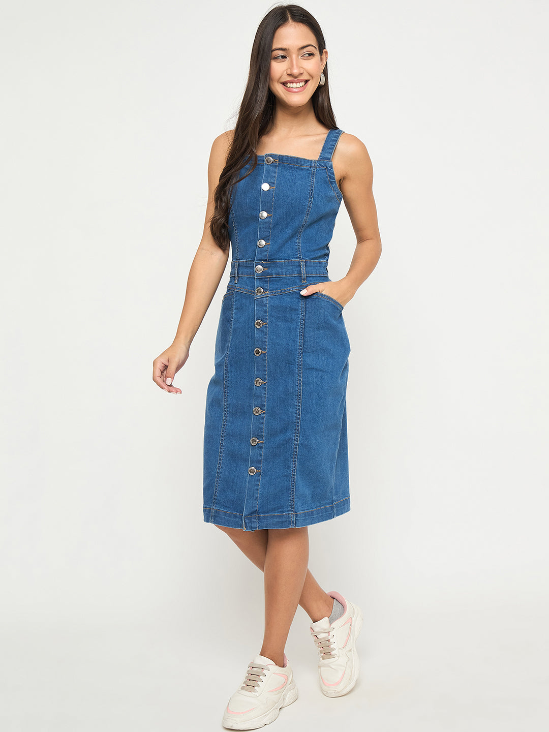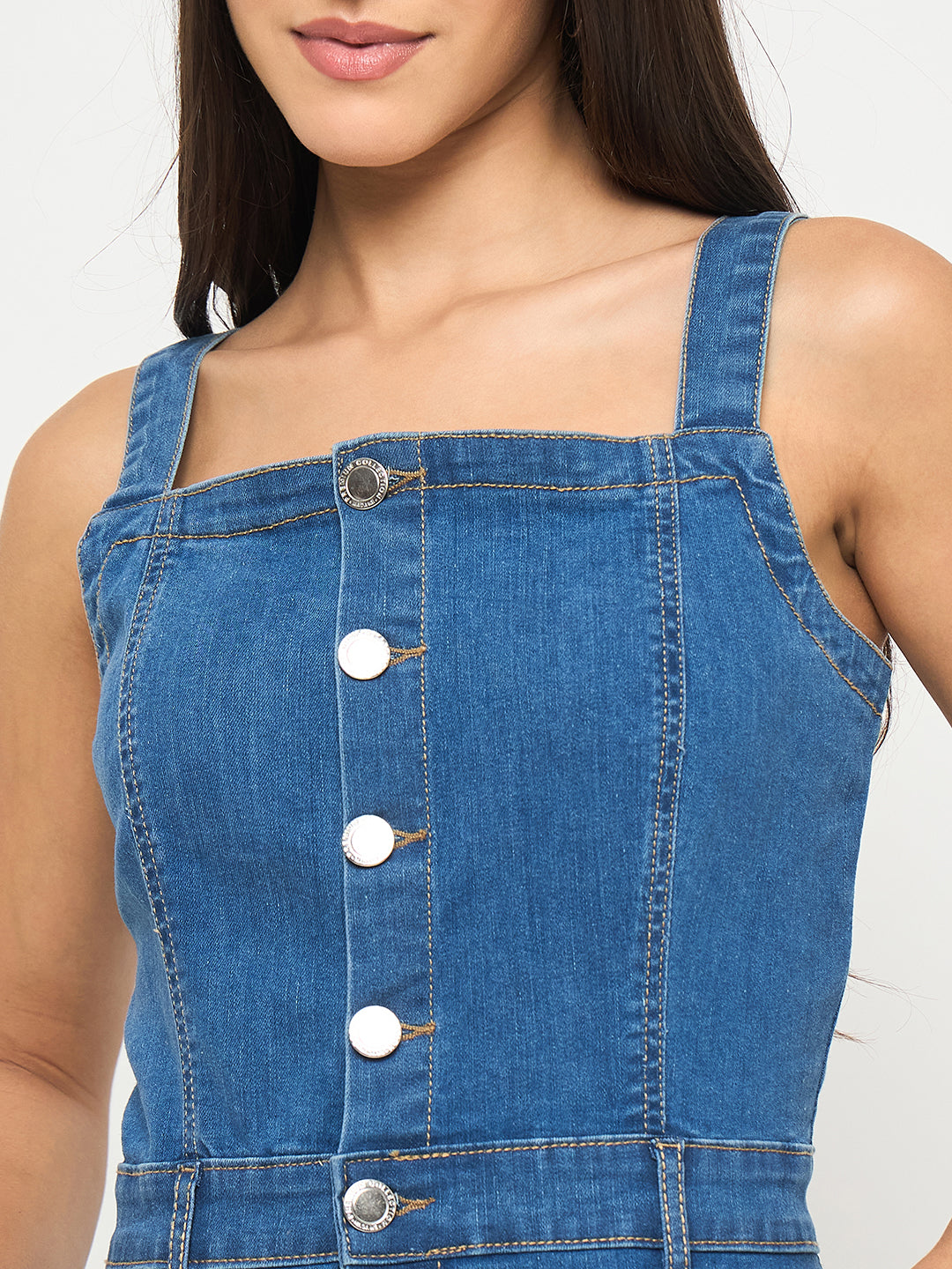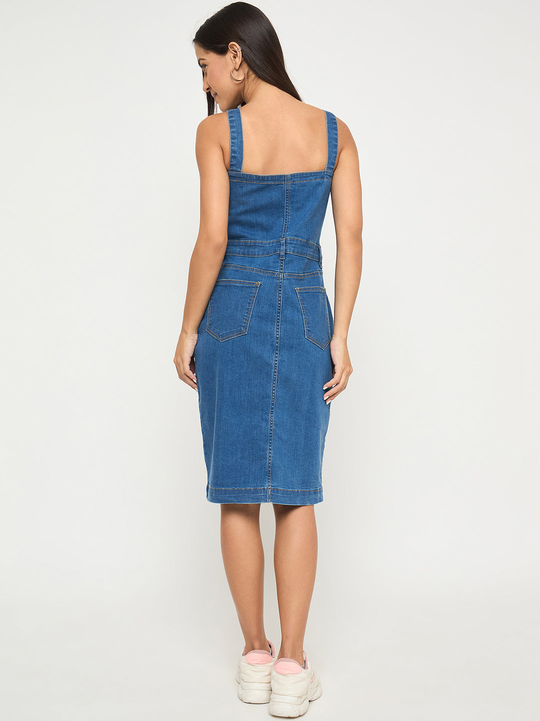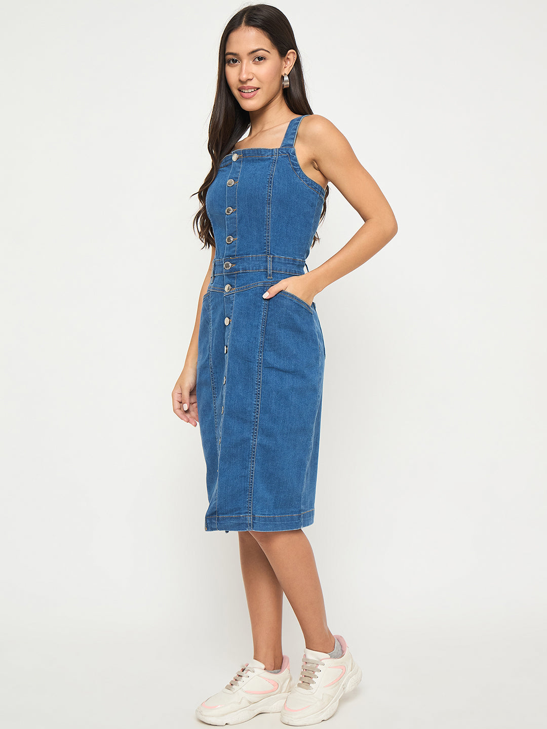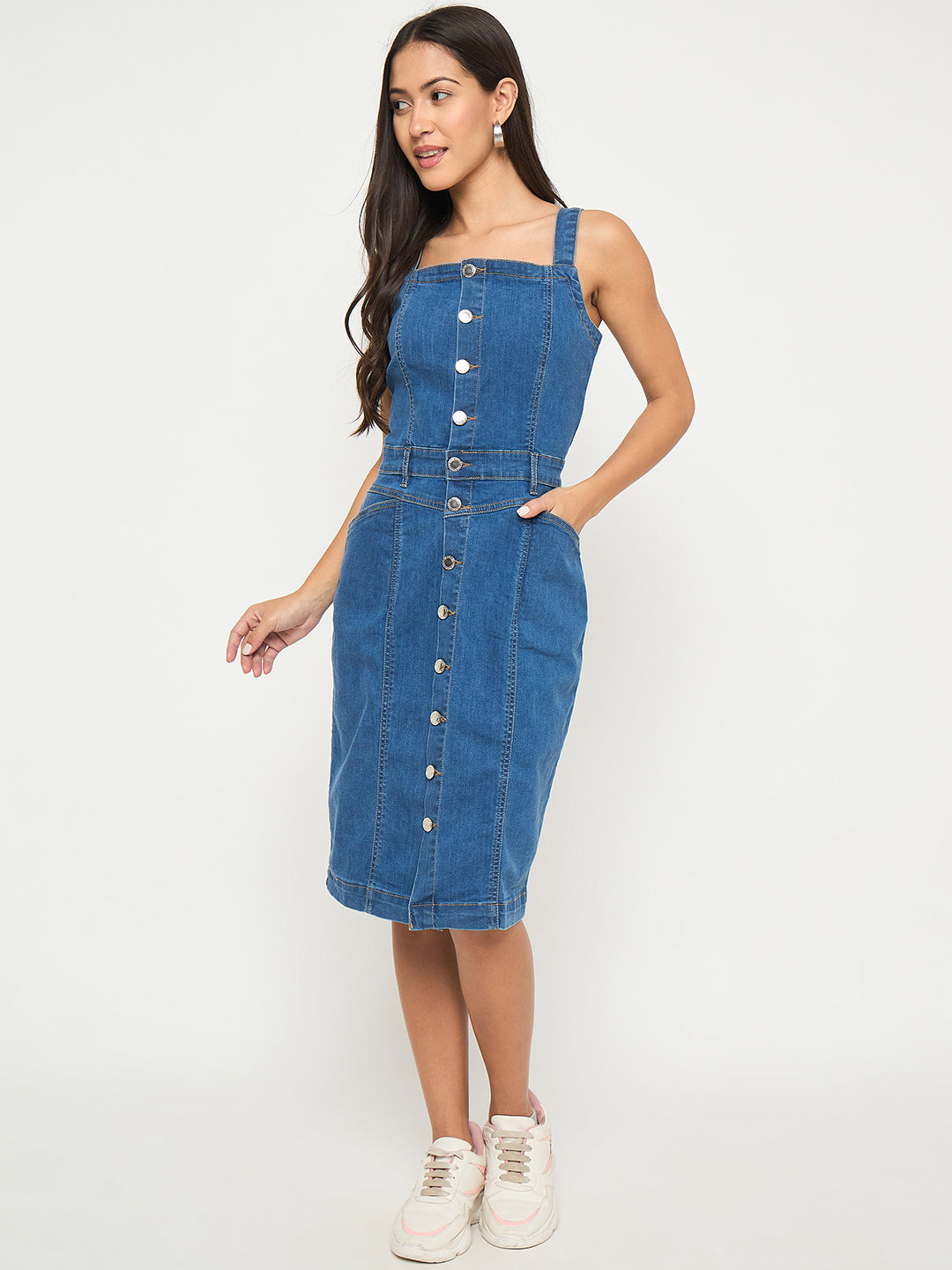 Madame Divided Buttoned Mid Blue Denim Mini Bodycon Dress