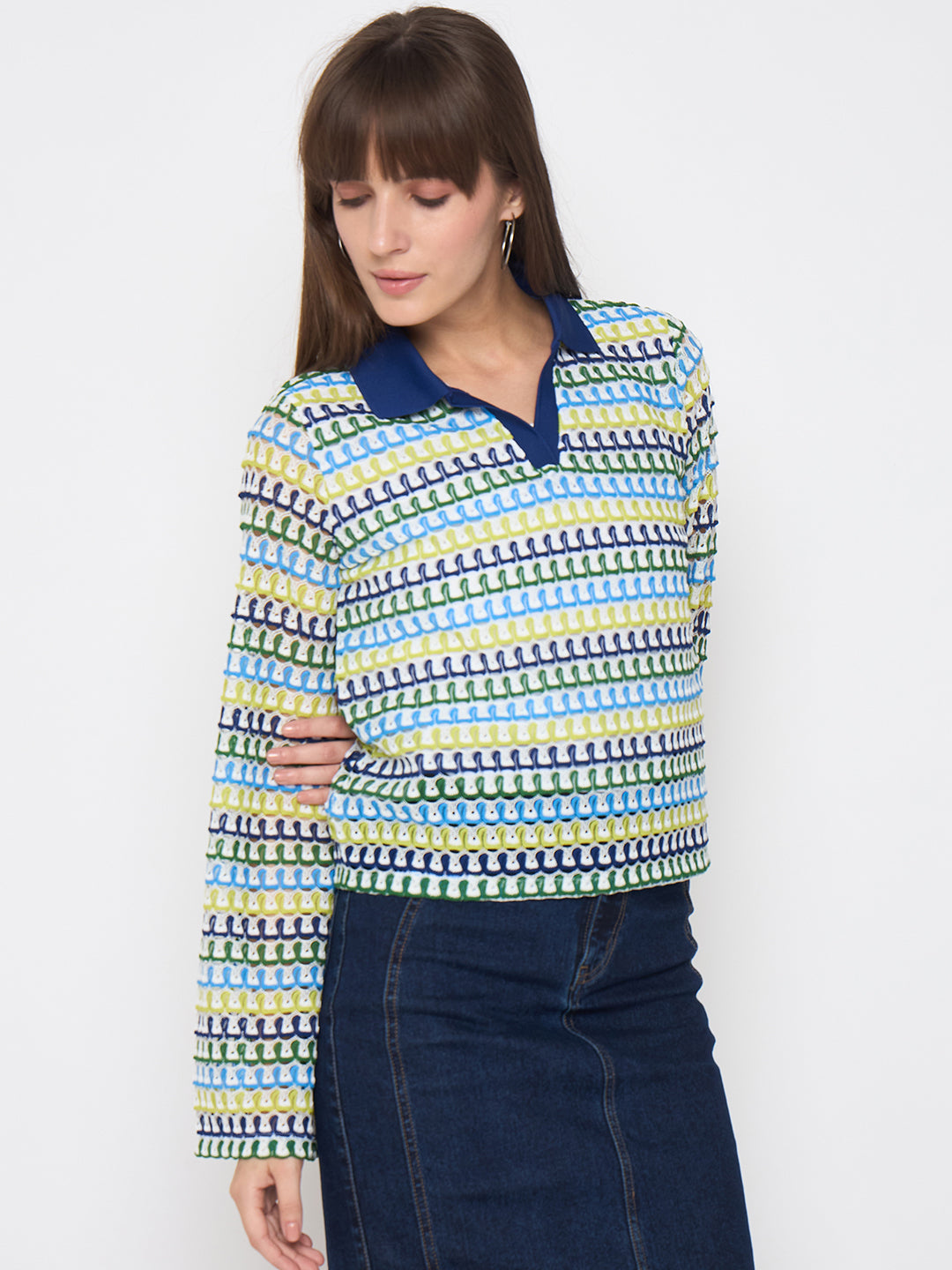 Madame Crochet Contrasting Collar Blue Top