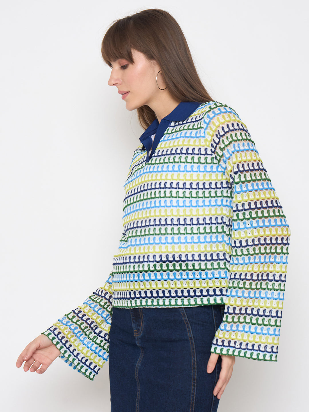 This blue top blends classic charm with modern elegance. The contrasting crochet collar adds a delicate, vintage-inspired touch, making it a standout piece. Crafted from soft, lightweight fabric, it ensures all-day comfort while maintaining a polished look. The versatile design pairs effortlessly with jeans for a casual vibe or trousers for a more refined outfit. Whether you're dressing up for brunch or keeping it stylish at work, this top brings effortless grace to any occasion.