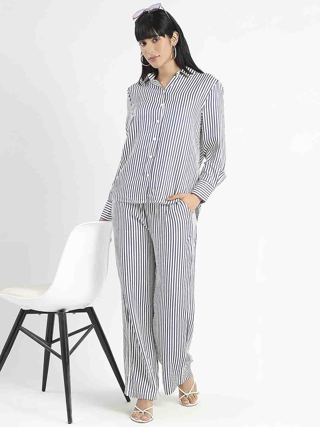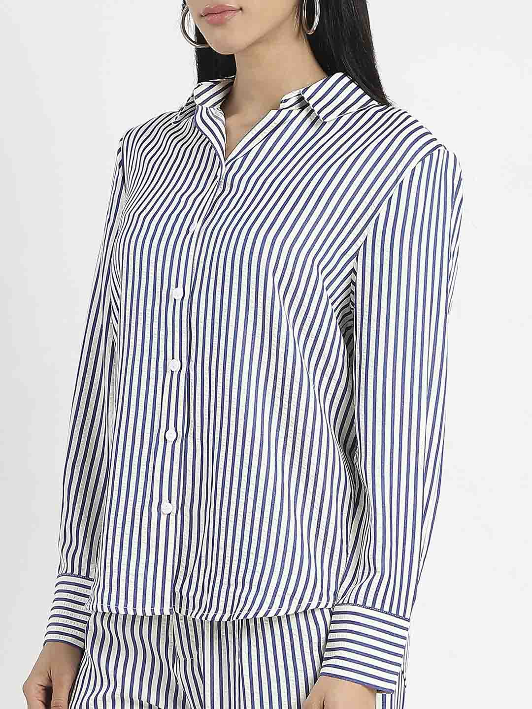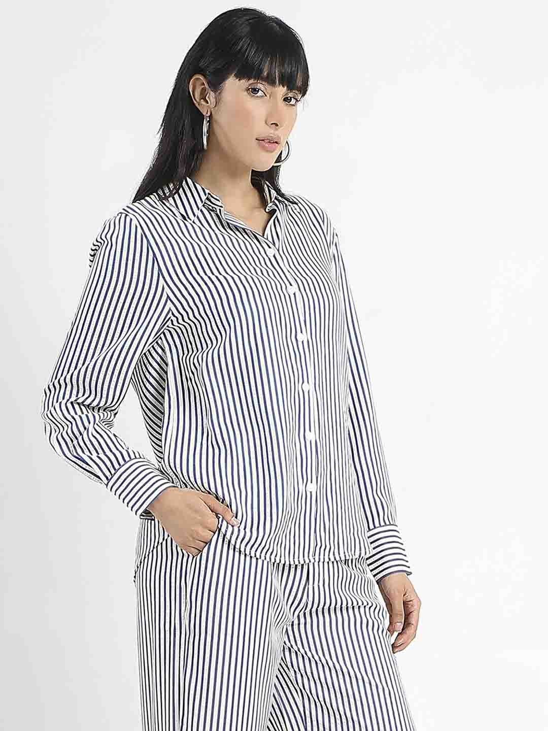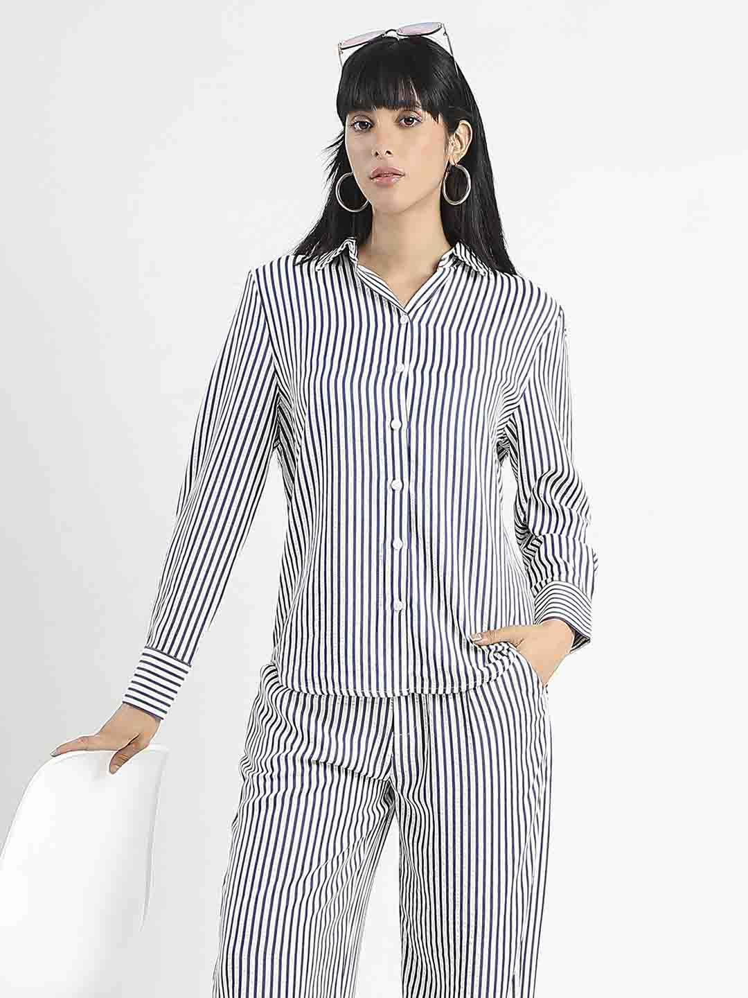 Command attention with a rich hue and crisp stripes that exude quiet confidence, while the full sleeves bring a tailored finish, perfect for a chic statement.