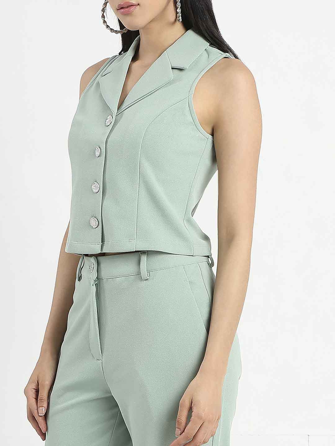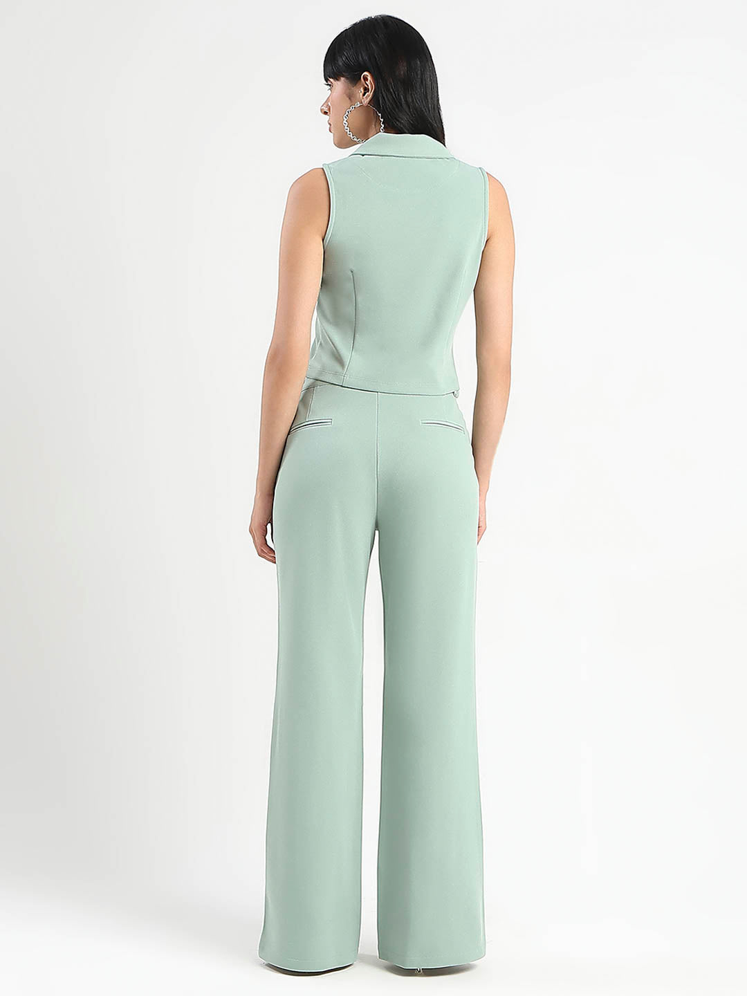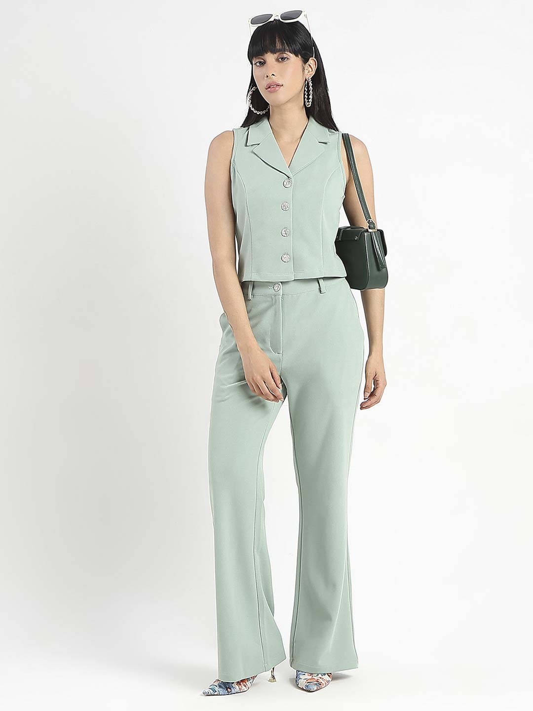 Elevate your style with this olive green set, featuring a crop top paired with side-slit trousers for a chic look. Perfect for those who mix style with ease.